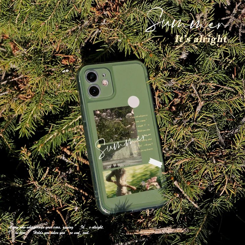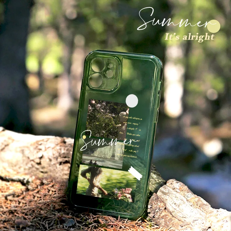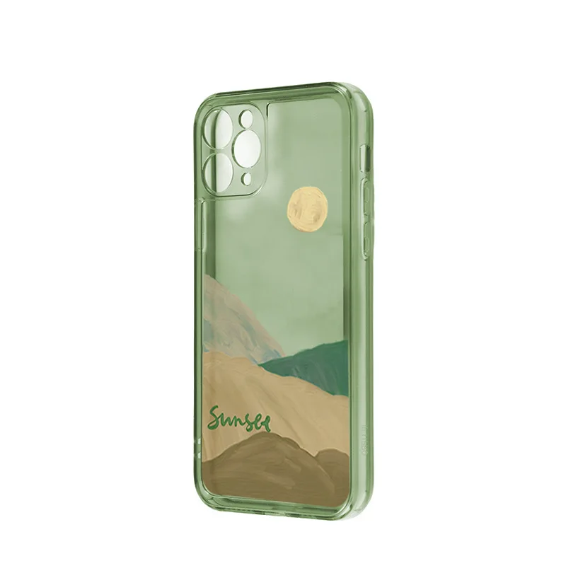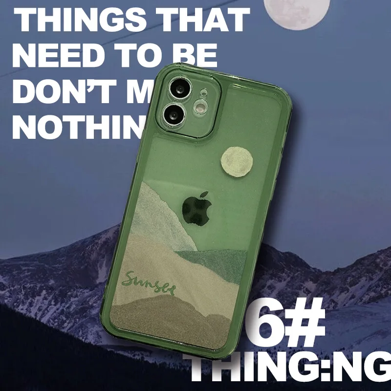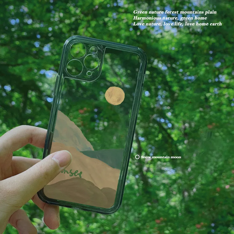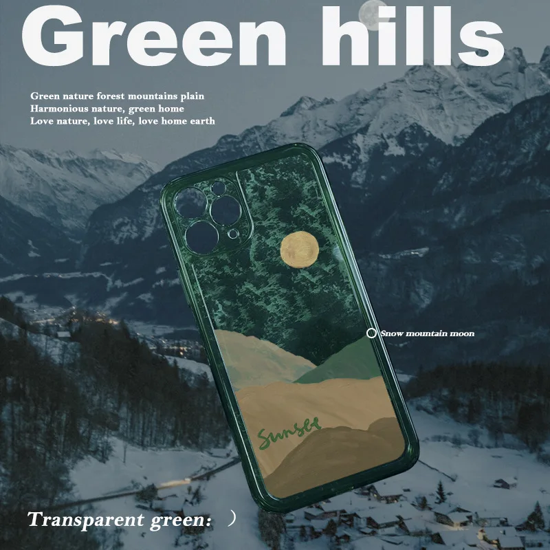 Addition Information of Green Hills Transparent Summer Breeze Phone Case For iPhone 13 12 11 Pro Max TPU Emerald Colored Drawing Cartoon Back Coveri